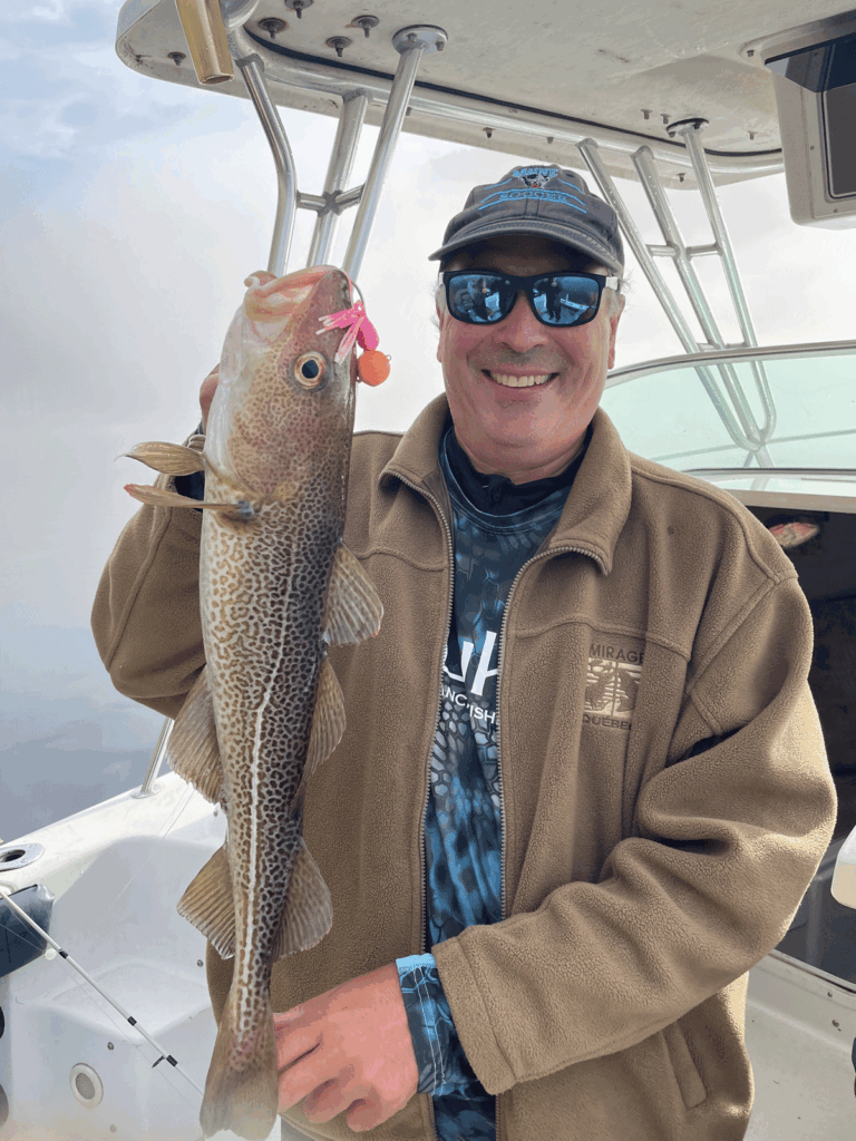 Première morue ogac (à gauche) de l’auteur lors d’une pêche en eau libre dans le Saguenay.